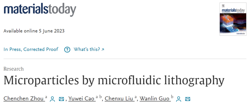 Zhou C, Cao Y, Liu C, Guo W. Microparticles by microfluidic lithography. Mater Today 2023.