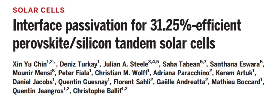 原文详情:Xin Yu Chin et al. Interface passivation for 31.25%-efficient perovskite/silicon tandem solar cells.Science381,59-63(2023).DOI:10.1126/science.adg0091.