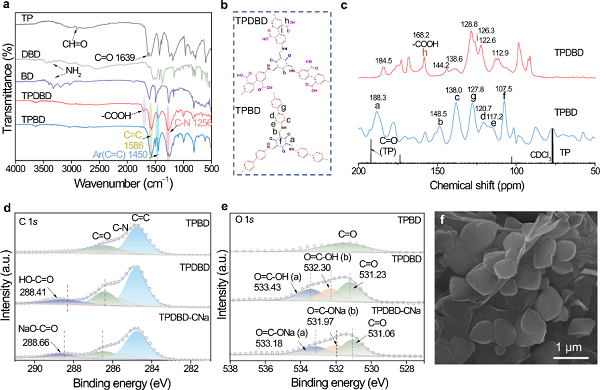 (d)TPBD、TPDBD和 TPDBD-CNa的XPS C 1s光谱。