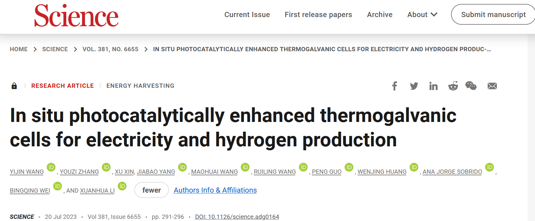 近日,西北工业大学李炫华教授团队报道了一种在热电池中使用光催化剂增强氧化还原反应的方法,以实现连续的氧化还原离子浓度梯度,从而更有效地将热能转化为电能和氢气。这种新型的热电池系统具有潜在的应用前景,为可再生能源的开发提供新的思路和方法。相关的研究成果以“In situ photocatalytically enhanced thermogalvanic cells for electricity and hydrogen production”为题发表在science上。