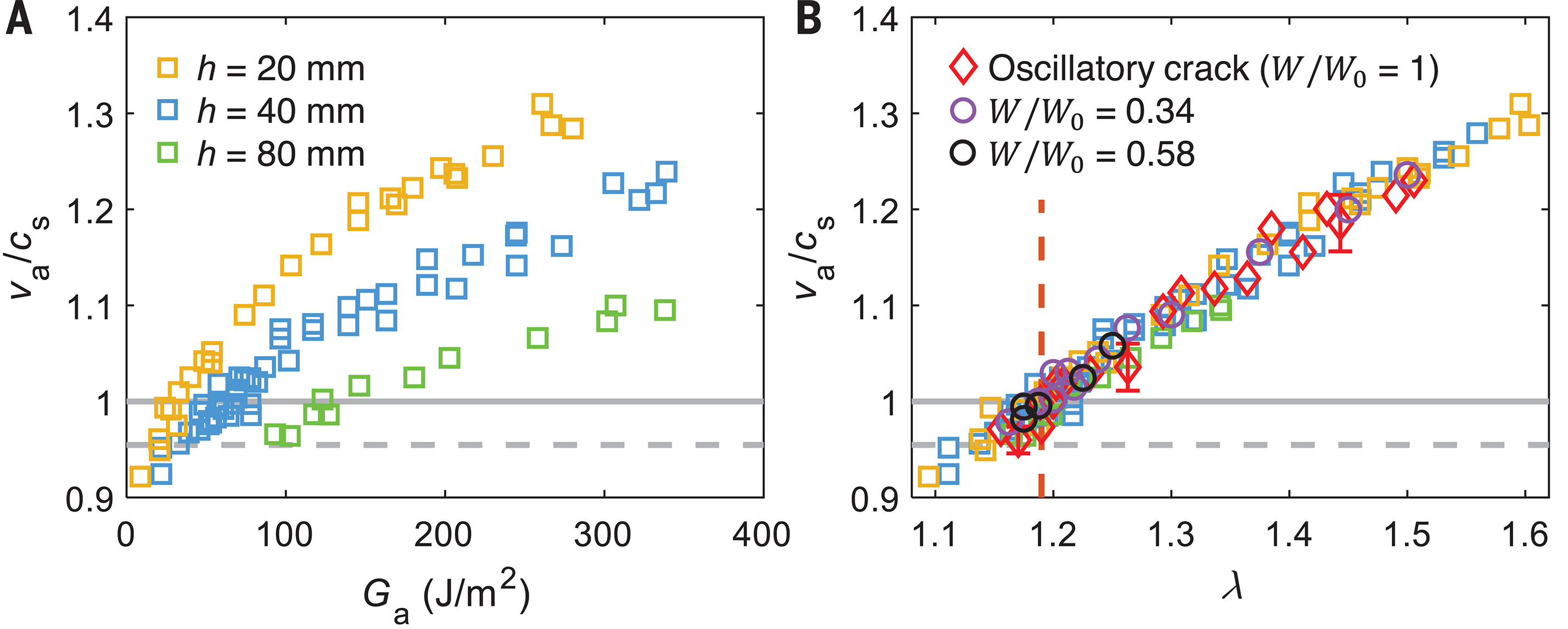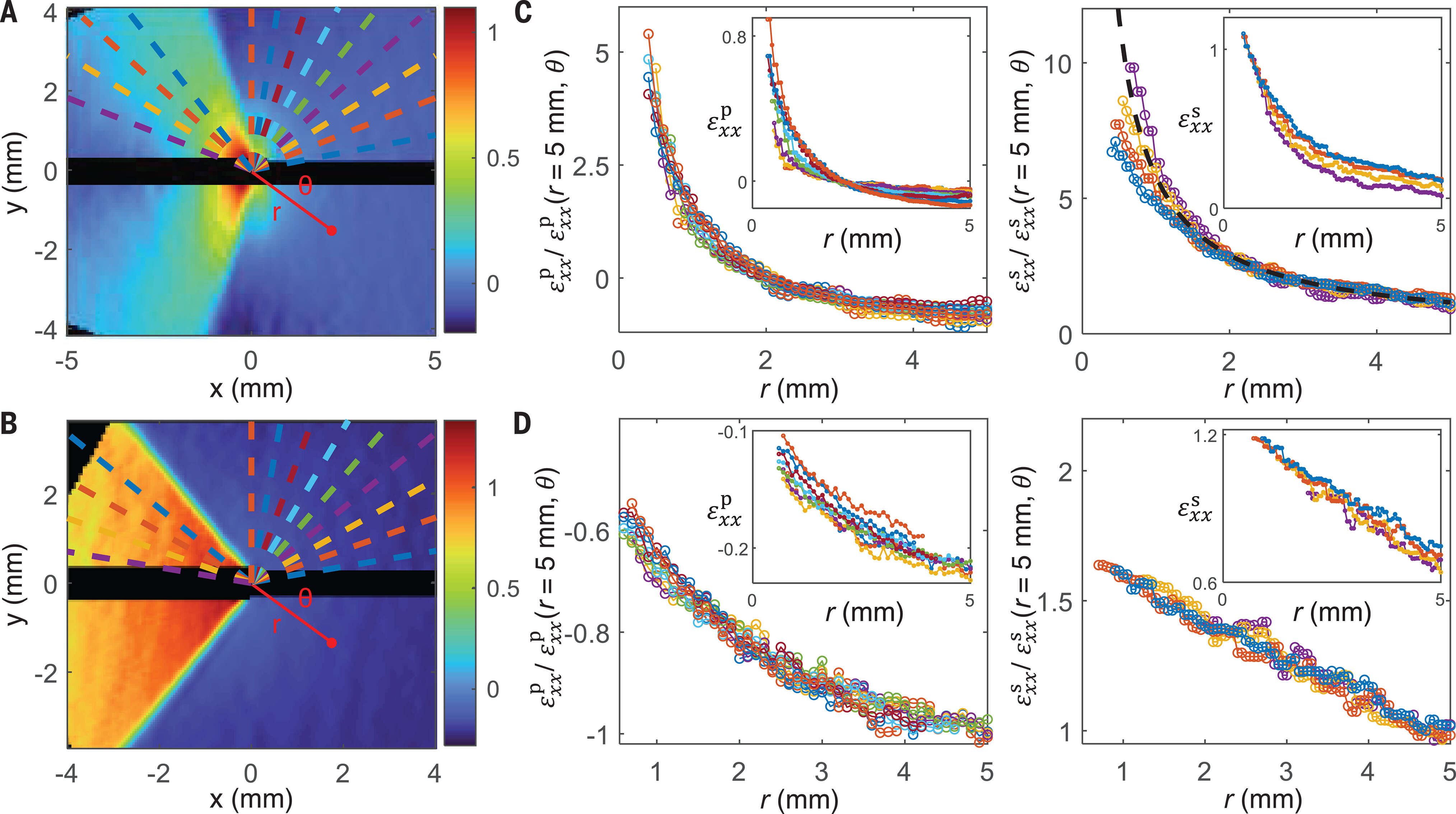 图3 超剪切裂纹的应变场依赖性。 ©2023 AAAS