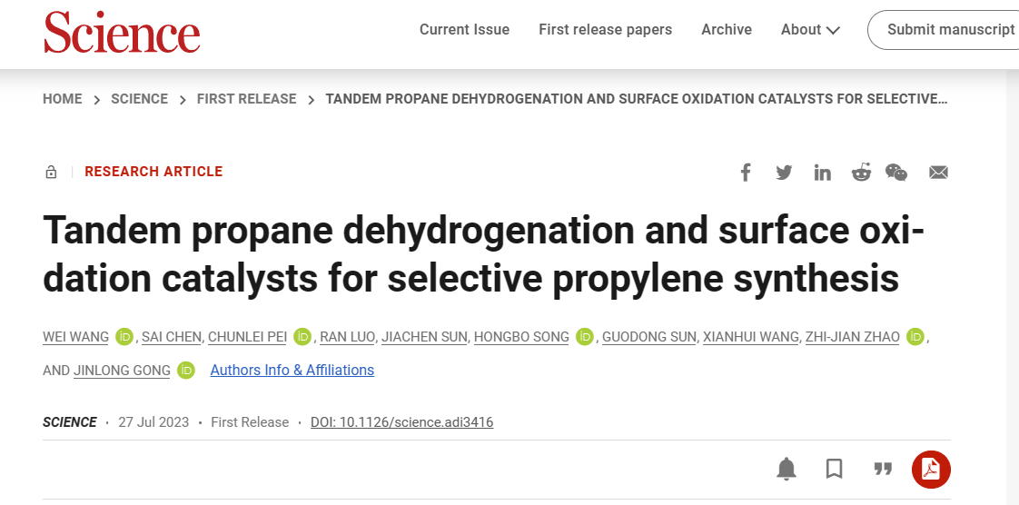 文献链接:Tandem propane dehydrogenation and surface oxidation catalysts for selective propylene synthesis. Science. 2023.
