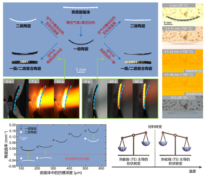 突破了先前4D打印陶瓷技术的局限性,探究了基于非接触式激励的一步式变形变质4D打印陶瓷机制。