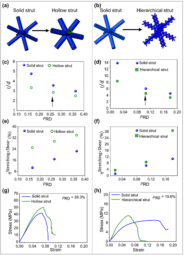 图6:基于中空杆和分级杆的长径比()调控和超材料强化策略