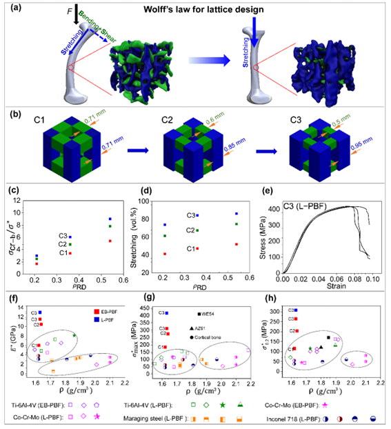 图7:基于人体骨骼Wolff定律的长径比()调控和超材料强化策略