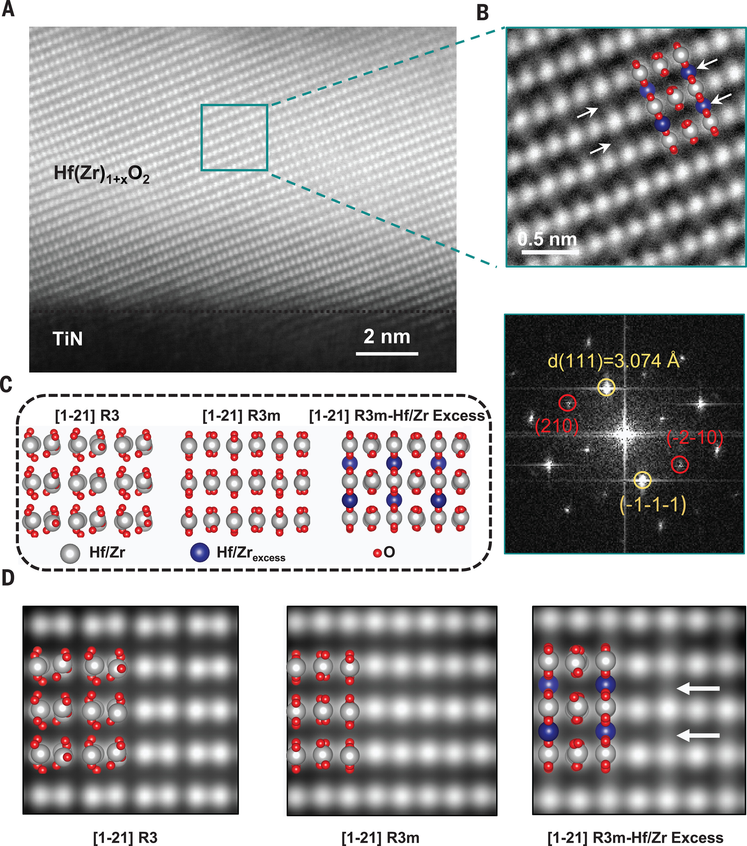 图2 菱形相Hf(Zr)1+xO2的原子尺度STEM分析 ©2023 AAAS