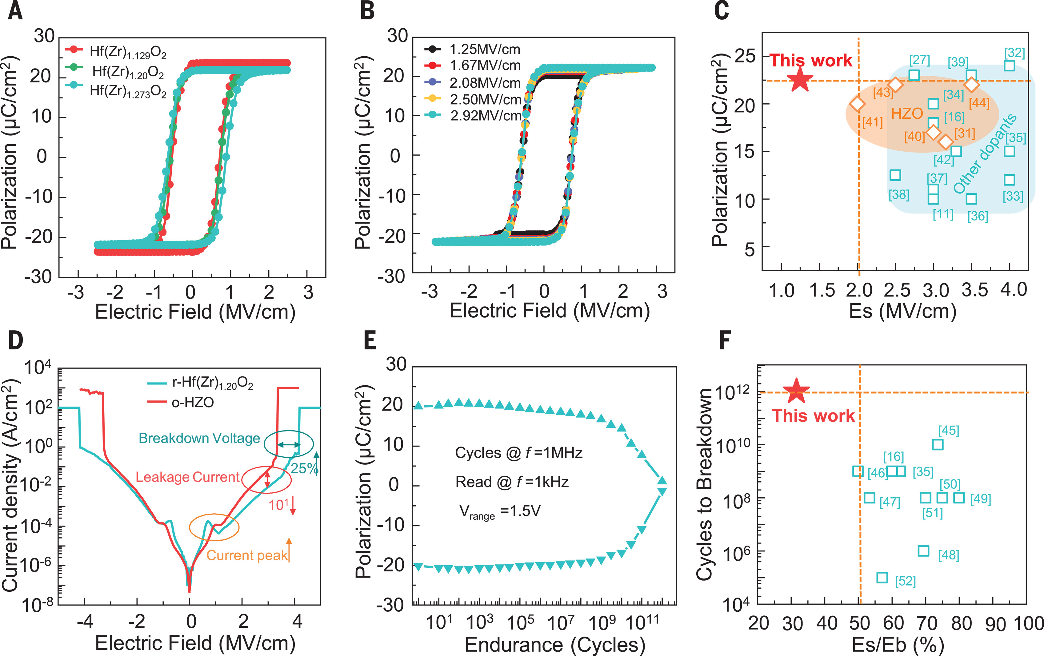 图4 r-Hf(Zr)1+xO2薄膜的铁电性能 ©2023 AAAS