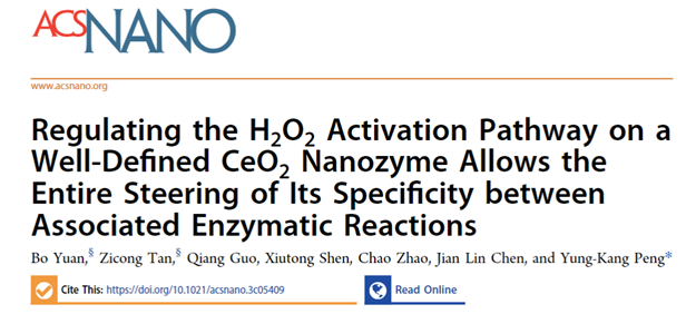 参考文献:Bo Yuan,§ Zicong Tan,§ Qiang Guo, Xiutong Shen, Chao Zhao, Jian Lin Chen, and Yung-Kang Peng*. Regulating the H2O2 Activation Pathway on a Well-Defined CeO2 Nanozyme Allows the Entire Steering of Its Specificity between Associated Enzymatic Reactions. ACS Nano.2023.