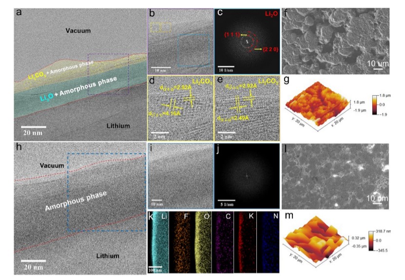 (i)-(m) 改性电解质沉积的LMA的SEM和AFM图像