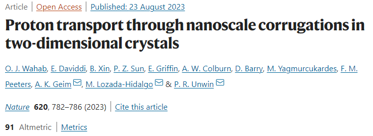 最新Nature:二维晶体中质子通过纳米尺度波纹的快速输运