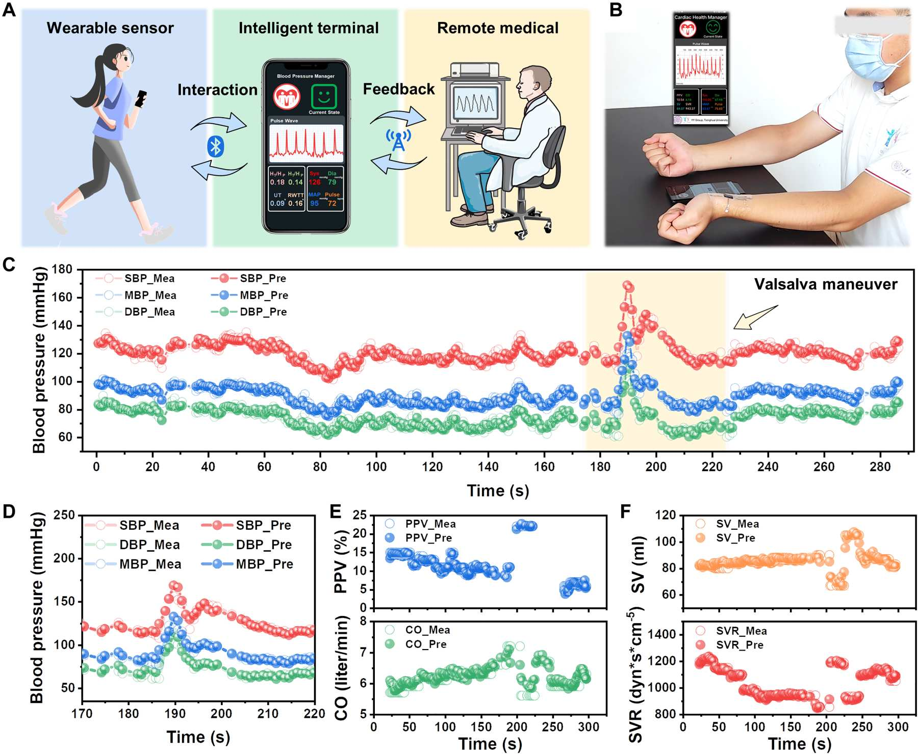 图5 智能血压和心功能监测系统在实际应用中的演示。@2023 The Authors