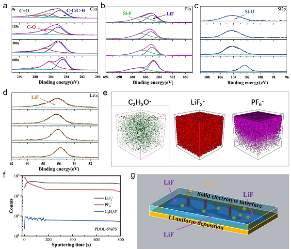 (f)含HCPE的锂电池中Li SEI的深度分布。