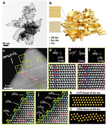 图六 2H/fcc Au99Cu1多级纳米片(Adv. Mater. 2023,DOI: 10.1002/adma.202304414)。