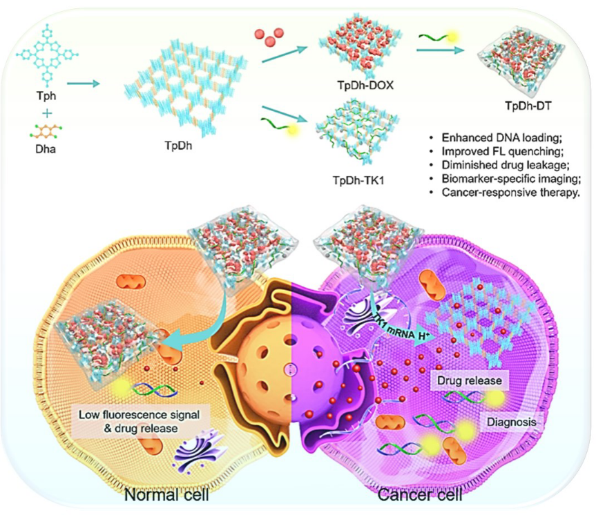 图7 TpDh-DT COFs的制备、肿瘤细胞特异性成像及治疗应用© 2023 Wiley