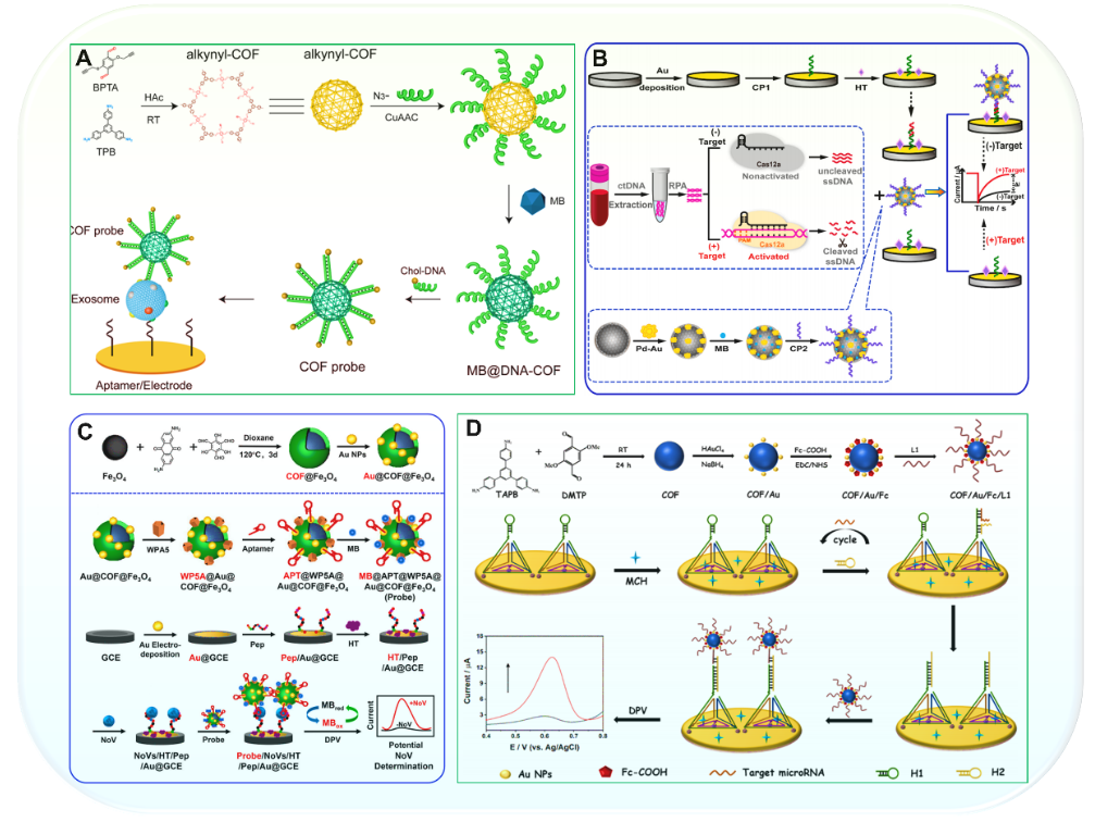 图8 COFs用于不同目标分析物的电化学传感© 2023 Wiley