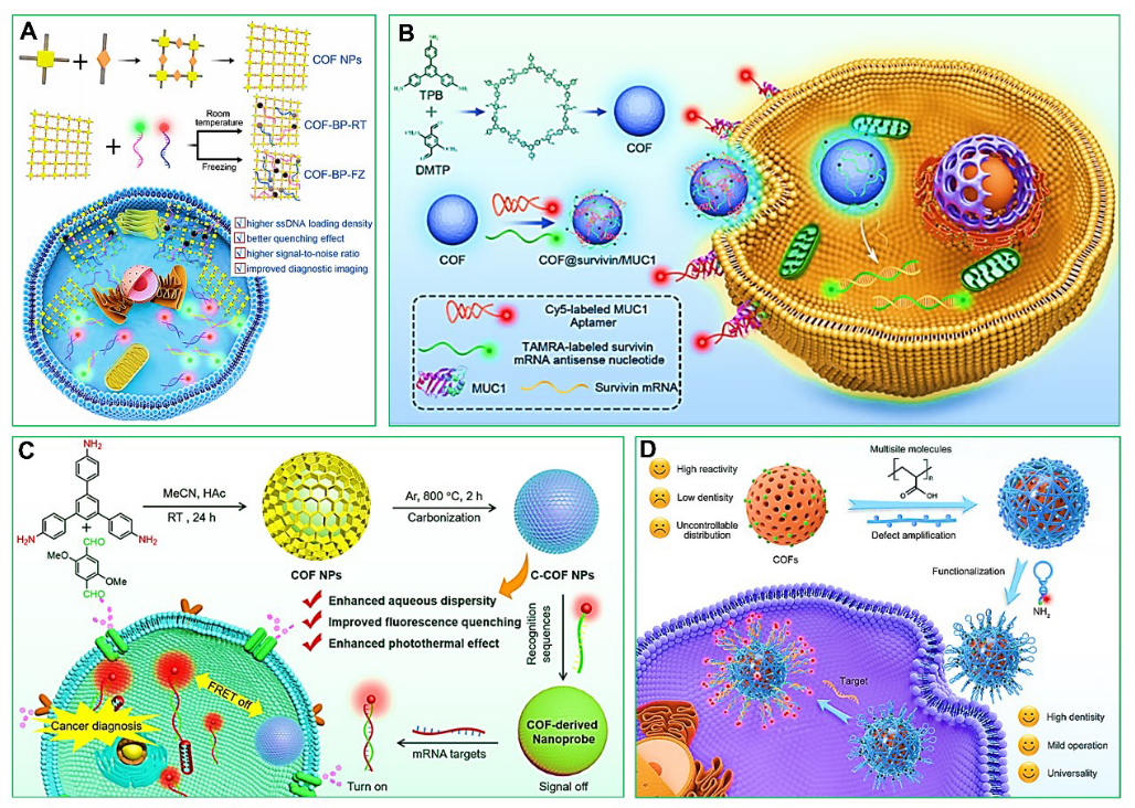 图9 COFs用于不同目标分析物的荧光成像© 2023 Wiley