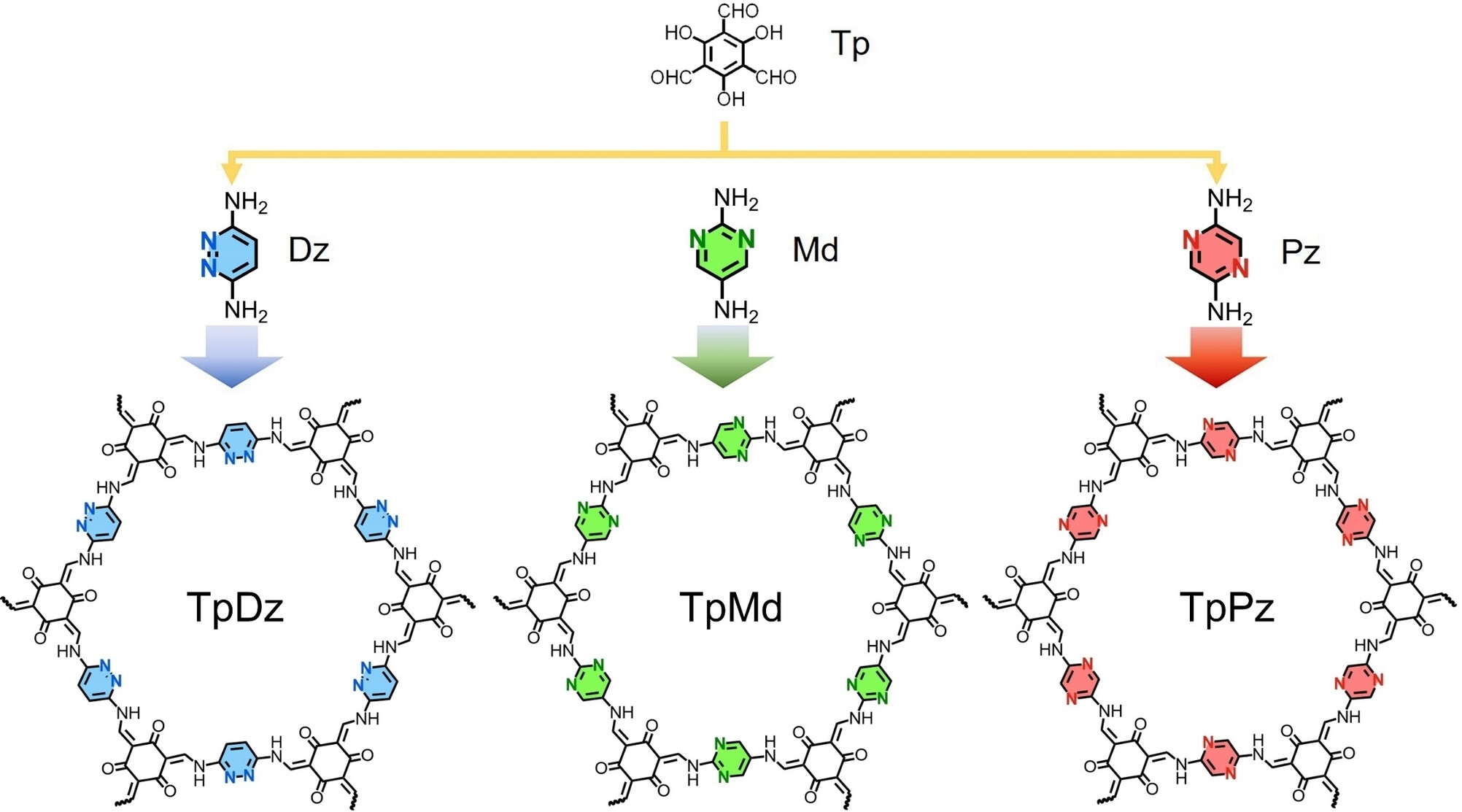 图1.不同相对氮位置的DAzCOFs化学结构示意图。© 1999-2023 John Wiley & Sons, Inc.