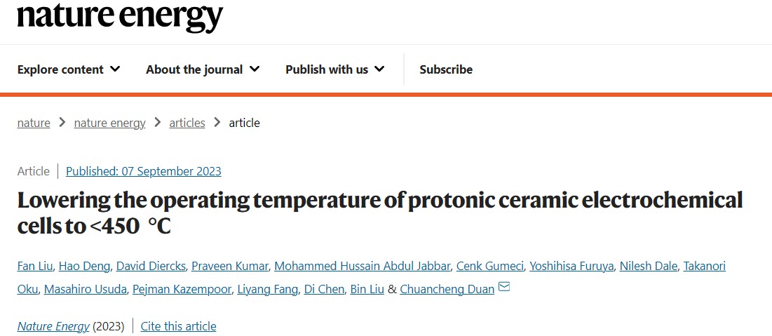 Lowering the operating temperature of protonic ceramic electrochemical cells to <450 °C. Nat. Energy. DOI: 10.1038/s41560-023-01350-4