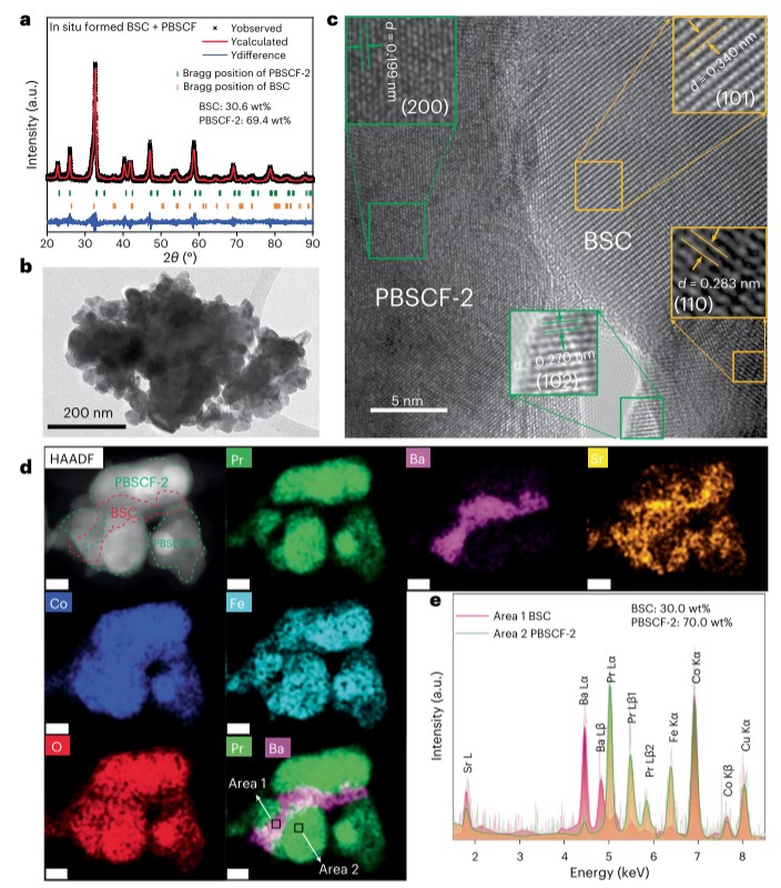 图3 BSC + PBSCF正极的晶体结构、形貌、显微结构和化学成分 © Springer Nature 2023