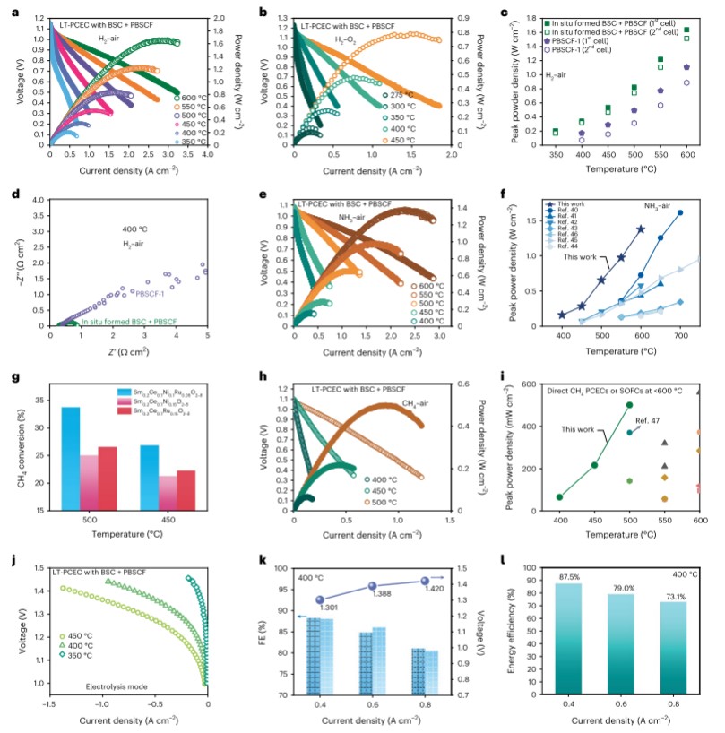图7 LT-PCEC 具有卓越的燃料电池和电解性能 © Springer Nature 2023