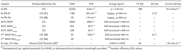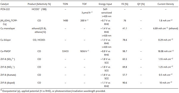 表2. 代表性MOF催化剂的CO2RR催化活性 © 2023 Wiley