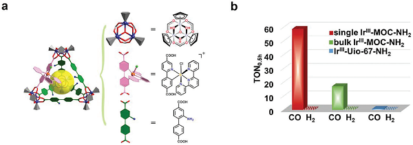 (b)IrIII-MOC-NH2、体IrIII-MOC-NH2、以及MOF类似物的光催化CO2RR活性。