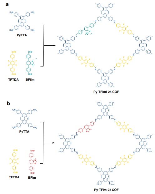 图1 合成Py-TFImI-25 COF和Py-TFIm-25 COF示意图。©The Author(s) 2023