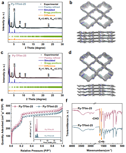 图2 Py-TFImI-25 COF和Py-TFIm-25 COF的结构表征。©The Author(s) 2023