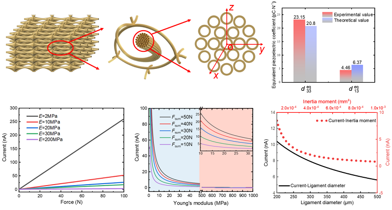 北京航空航天大学邵丽华教授与北京大学王建祥教授,美国工程院院士、休斯顿大学Pradeep Sharma教授合作发现了天然多孔材料—植物丝瓜络的巨挠曲电效应。研究工作建立了力-电耦合模型,揭示了其力-电耦合机制,发现植丝瓜络展现出优异的力-电耦合性能,比密度等效压电系数超过常见压电材料-PVDF的50倍、是PZT的10倍。工作还展示了丝瓜络作为绿色智能传感器,用于检测机械变形、传感压力,识别声音/音节等;同时,也可以作为应变梯度发电机,经过对60×20×6mm3的丝瓜络按压几分钟后,其将机械能转换为电能,输出挠曲电流点亮了6个LED。研究成果以The giant flexoelectric effect in a luffa plant-based sponge for green devices and energy harvesters为题发表于PNAS。
