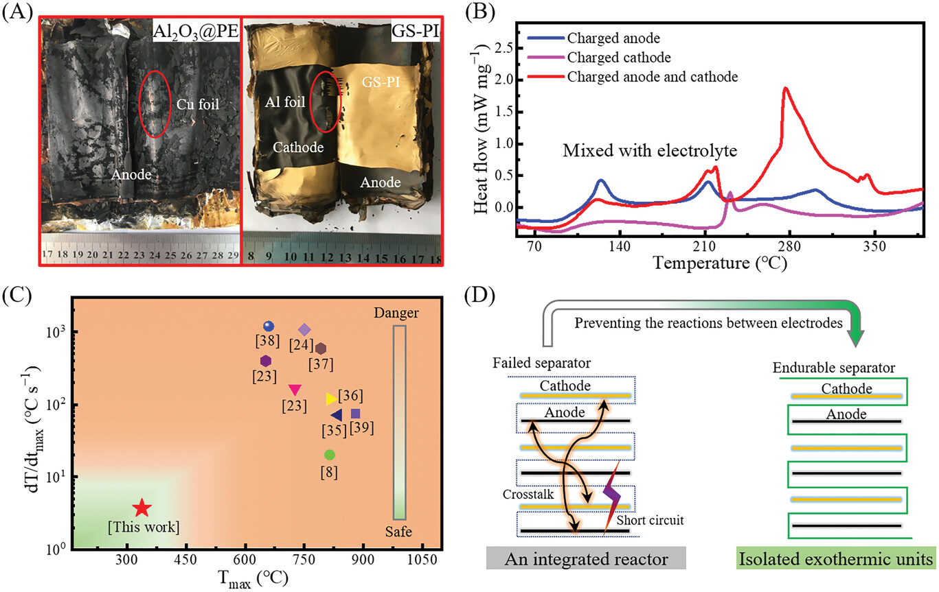 B)提出的不收缩且无化学相互作用的纳米多孔隔离层已被证明是有效的策略,可以减轻这些挑战,从而实现高标准的电池安全性。
