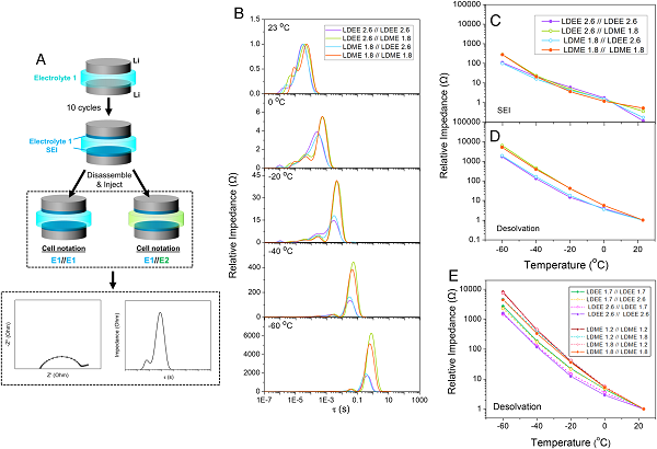 锂离子电池(LIBs)是现代便携式电子产品和电动汽车的基础技术。在众多候选者中,锂金属电池(LMB)以锂金属(3860 mAh g-1)取代石墨负极(372 mAh g-1),是最有前途的。除了旨在减轻寄生反应和体积变化的设计挑战外,LMB还必须遵守与新一代锂离子电池相同或相似的使用条件。也就是说,必须在快速充电和低温操作等动态应变操作条件下确保LMB的能量输出、库仑效率(CE)定义的循环性和安全性。近期研究表明,Li+的去溶剂动力学在实现这种条件下的运行中起着至关重要的作用。然而,对这一过程的调节通常是通过在系统中诱导定性程度的离子配对来实现的。