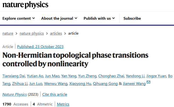原文详情:Non-Hermitian topological phase transitions controlled by nonlinearity (Nat. Phys. 2023, DOI: 10.1038/s41567-023-02244-8)