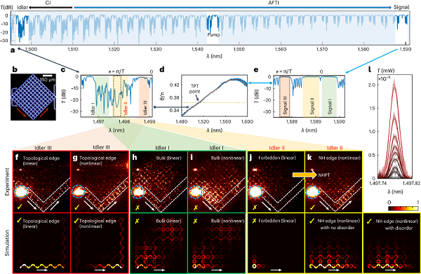 利用硅纳米波导的四波混频增益,在硅基集成光学拓扑绝缘体上实现了从禁带到非厄米传输边界态的百皮秒量级快速非厄米相变过程,成功重构了具有拓扑保护特性的相干光学输运信道。