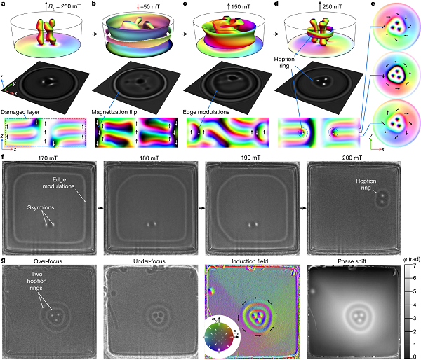 图1 几何受限FeGe样品中斯格明子串上的霍普夫子环 © 2023 Springer Nature