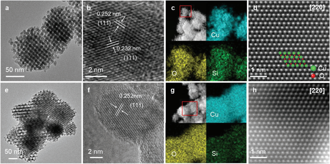 (c,g) p-CuSiO3/CuO、p-CuO的HAADFSEM图像和相应元素映射;