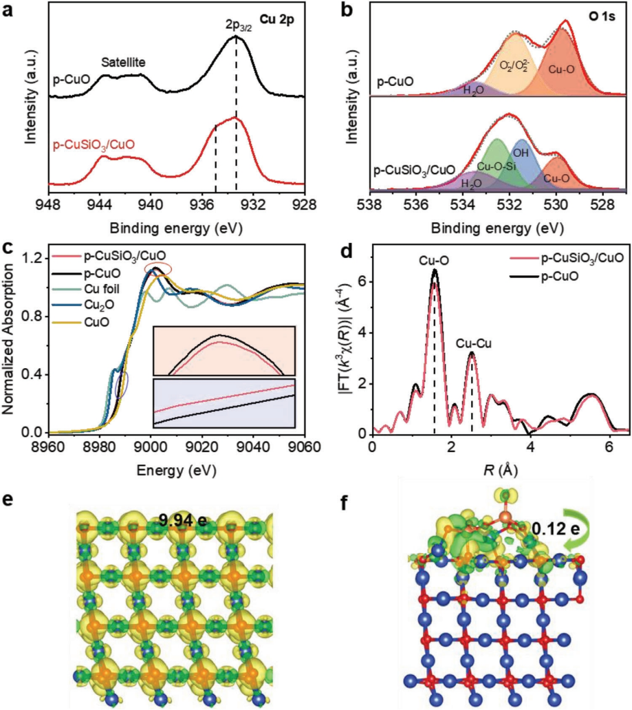 图2 p-CuSiO3/CuO和p-CuO的结构表征 © 2023 Wiley-VCH GmbH