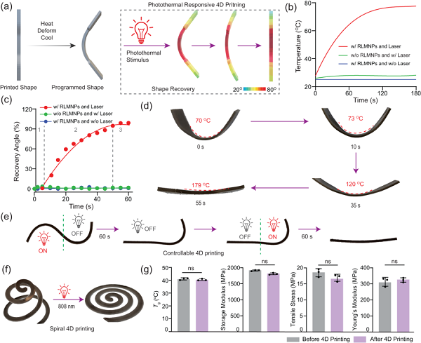 图4 具有1 wt% RLMNPs的LMPCs的NIR响应4D打印 © 2023 Springer Nature