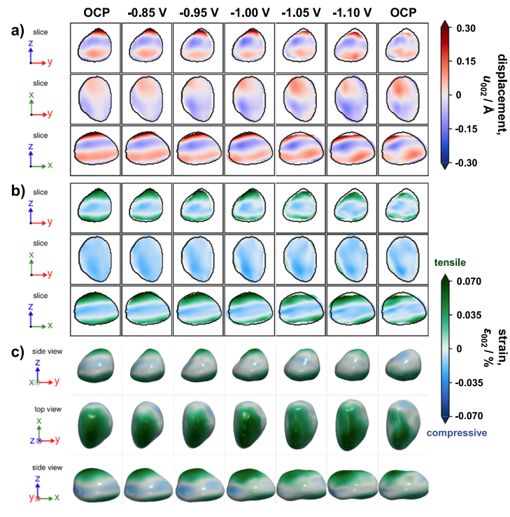 图4 在Deutsches ElektronenSynchrotron (DESY, Germany)的P10束线(PETRA III)上使用相干X射线对eCO2RR期间单个NPs进行原位nano-BCDI应变分析©2023 The Authors
