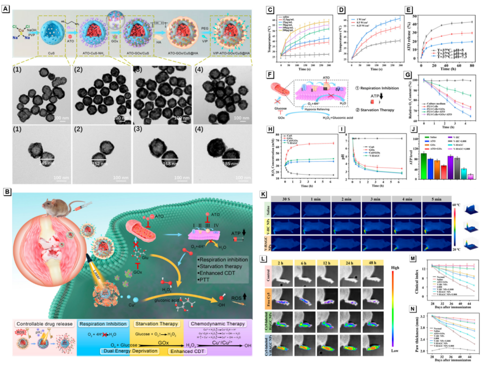 图3 多功能纳米平台用于增强类风湿性关节炎的CDT/PTT