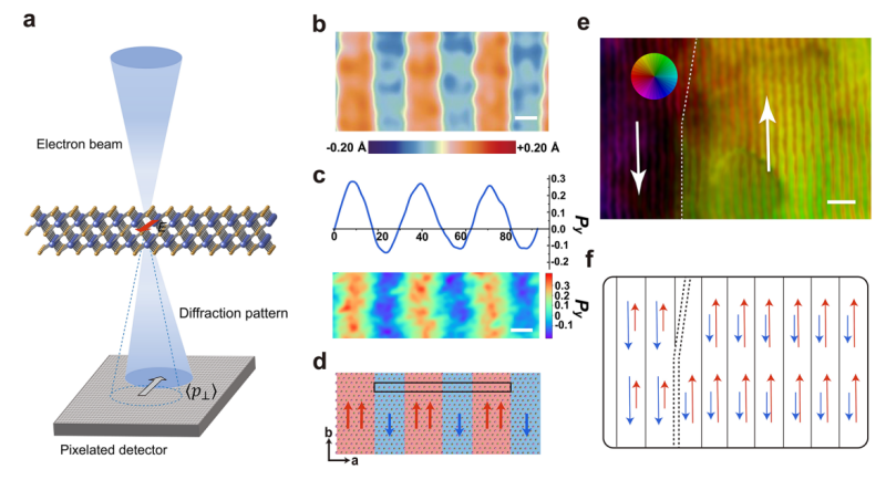 图3、四维扫描透射电子显微学(4D-STEM)揭示的非平衡纳米条带的净极化,为理解面内亚铁电畴提供了重要信息。图片来源:ACS Nano