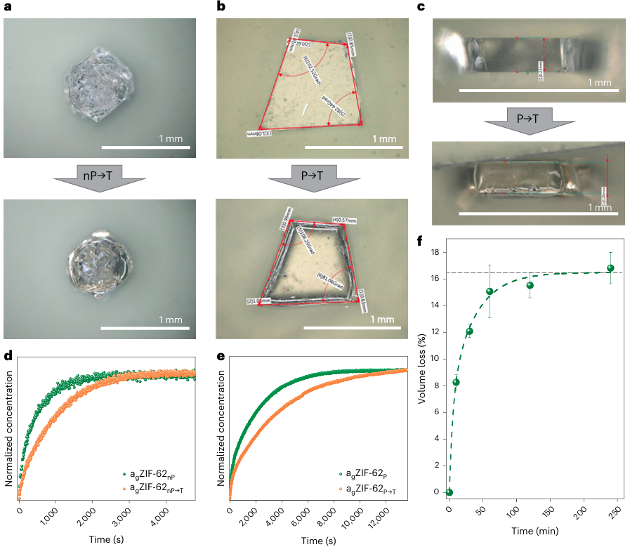 3. 通过温度、持续时间和机械负载的变化,ZIF-62可能会被可控地改变为“通用分子筛”,用于不会对材料造成化学损伤的气体。