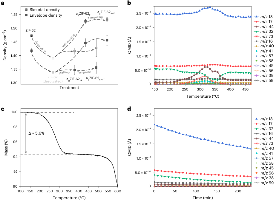 图4. 回火对ZIF-62合金孔隙率的影响。© 2023 Nature