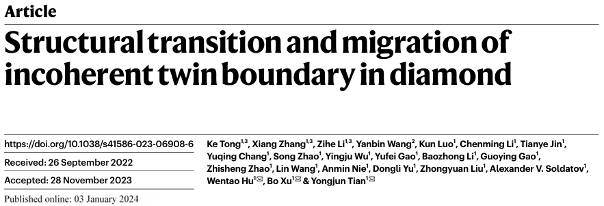 燕山大学Nature:金刚石结构转变与非相干孪晶界迁移