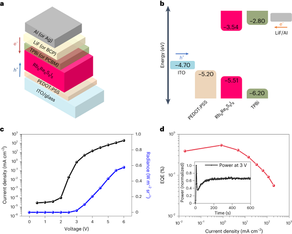 图4 优化的Rb6Re6S8I8 LED性能 © 2024 Springer Nature