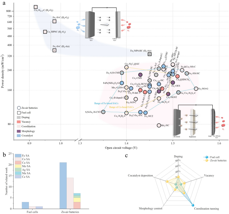 图10. 表面工程SACs用于锌空气电池和PEMFCs器件的性能比较。