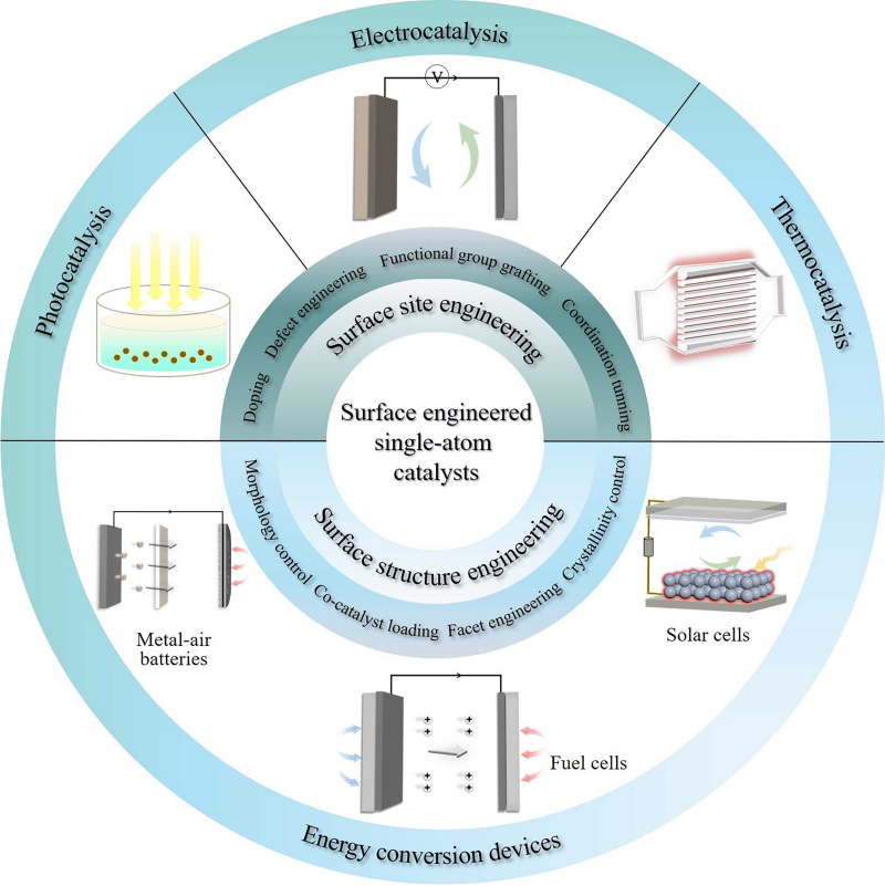 2.对各种表面工程修饰单原子材料的优势进行了总结,对这些材料在光催化、电催化、热催化和能源转化器件的应用进行了讨论和总结。