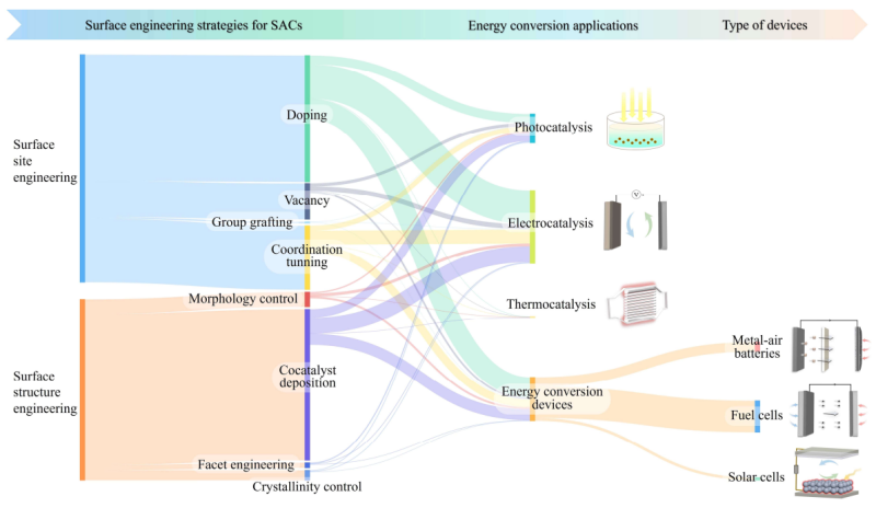 图1. 表面工程的单原子催化剂的分类与能源转化应用。
