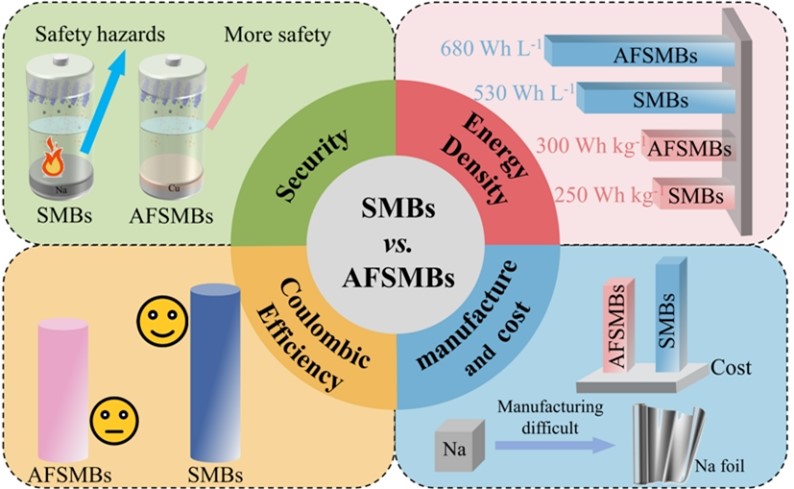 与传统的钠金属电池相比,无负极钠金属电池有几个优点。(1)高安全性;(2)高能量密度;(3)成本低;(4)制造简便。