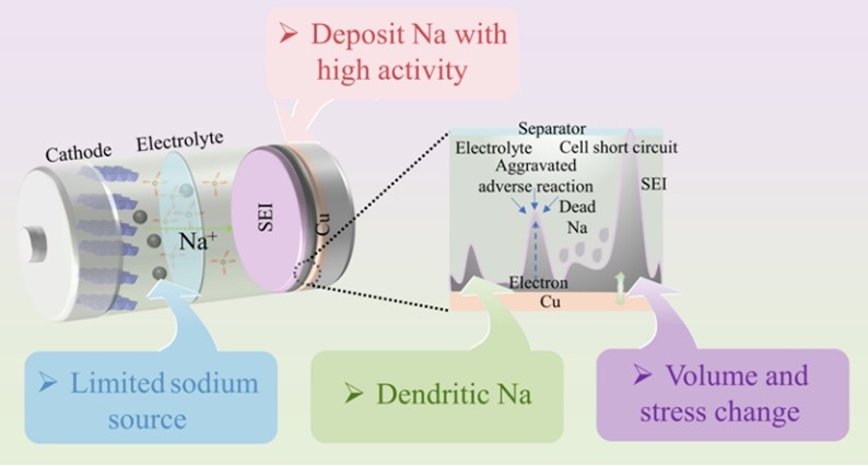 图4. 无负极钠金属电池的问题