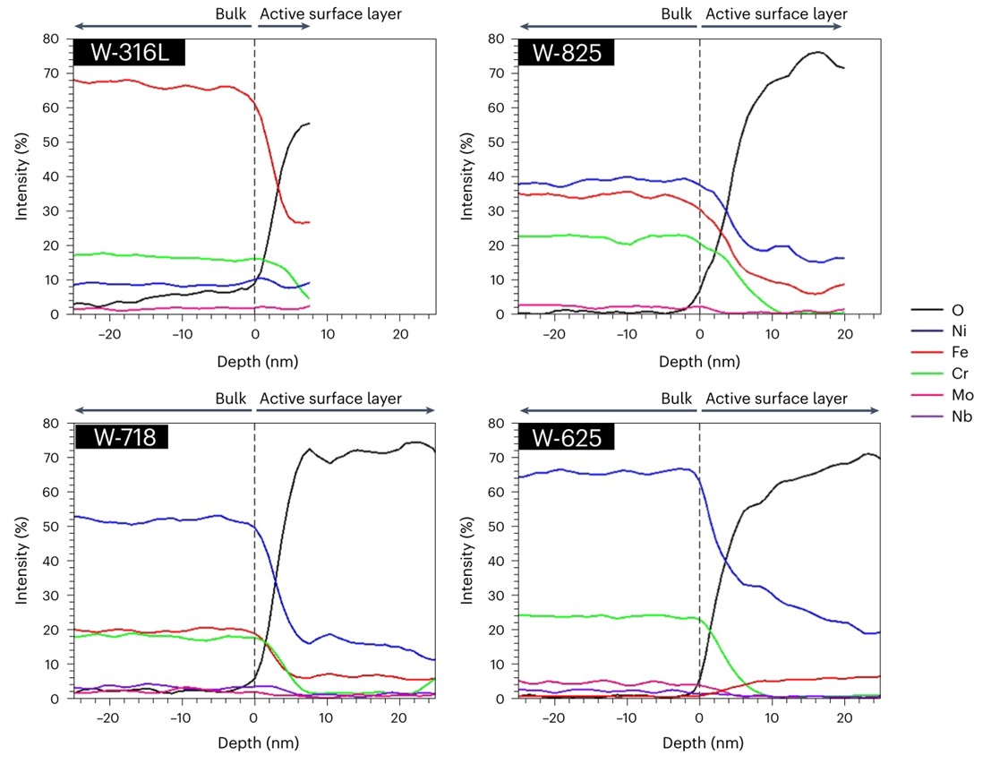 图3 TEM-EDS分析;活化样品的化学成分谱。负深度对应于体积,而正深度对应于活性表面层。©2024 Springer Nature